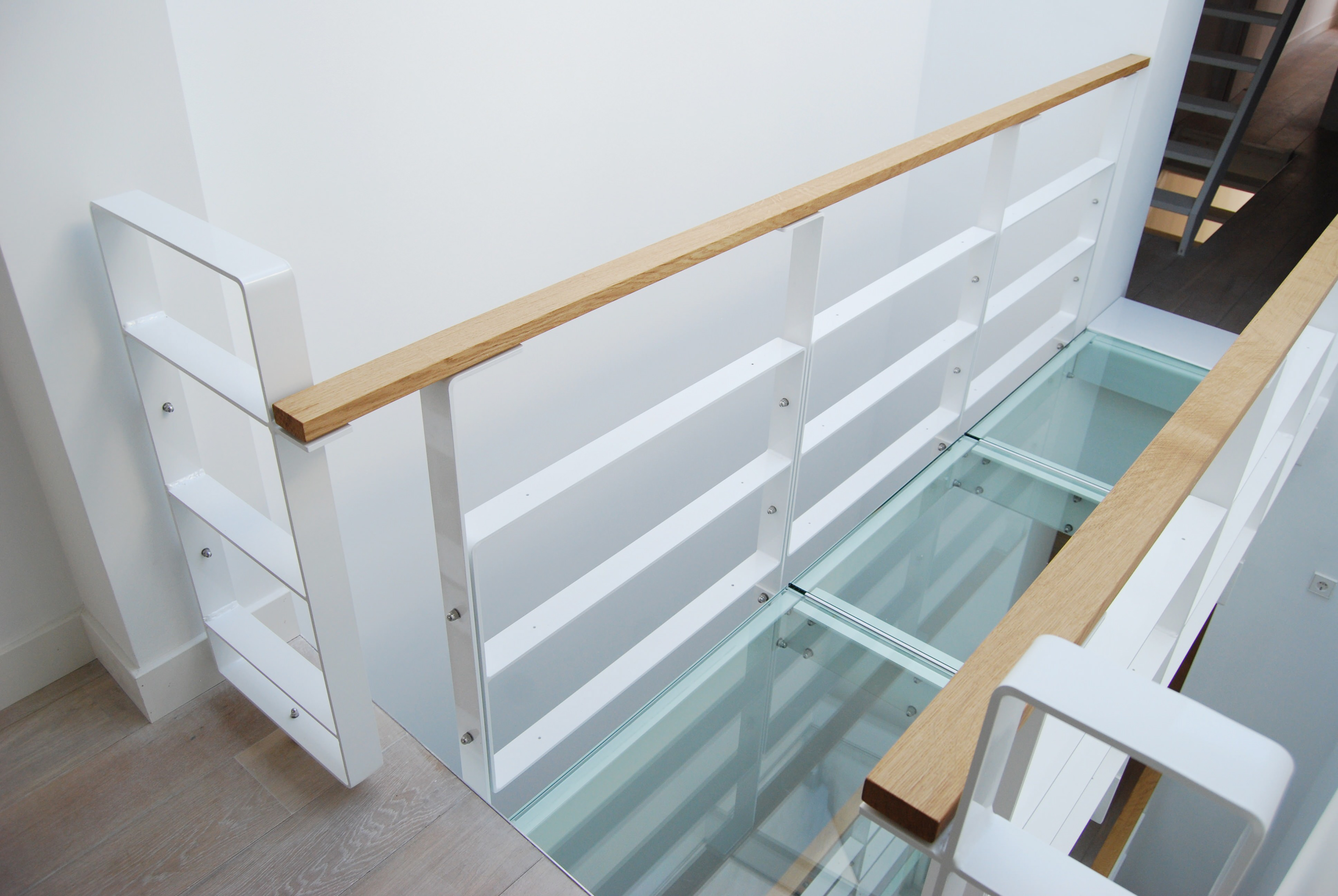 Het Lichthof is de verbinding tussen twee Amsterdamse panden. Van oorsprong een binnentuin. In de nieuwe situatie zijn op drie woonlagen de twee panden met elkaar verbonden en is het lichthof onderdeel van het interieur van de woning. Met op de beganegrond de keuken. De uitdaging: Maximale lichttoetreding en twee lichte bruggen die het licht naar beneden toe niet te veel onderbreken.